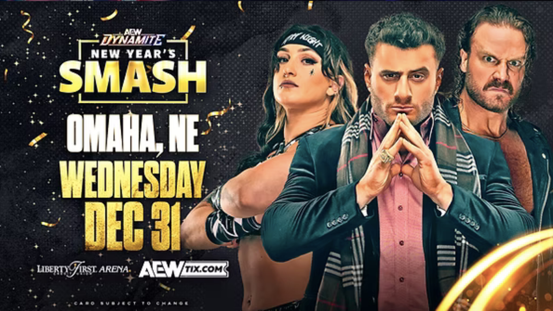 All Elite Wrestling held the episode 326 of AEW Dynamite: New Year’s Smash at the Liberty First Credit Union Arena in Ralston, Nebraska.