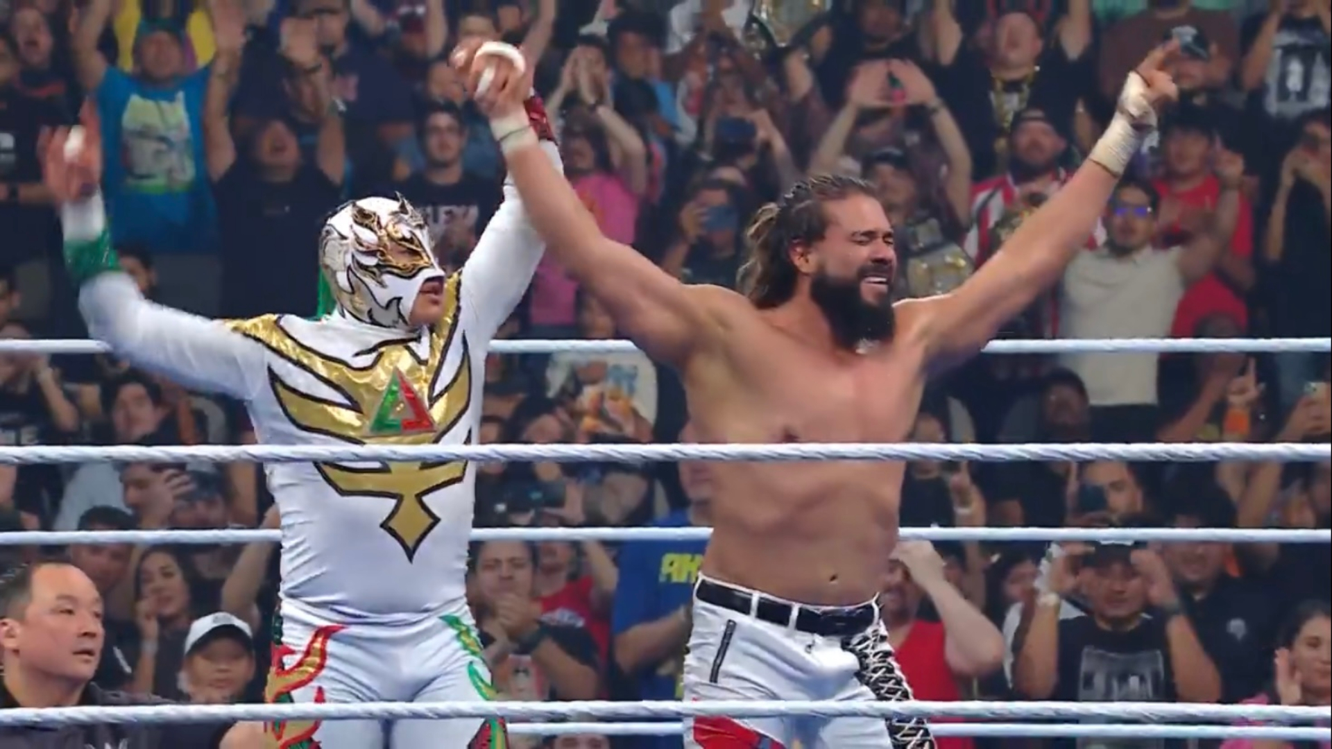 A medida que avanzaba la lucha, cada equipo tuvo sus momentos de dominio, pero fue la estrategia y la coordinación de Andrade y Rey Fénix lo que finalmente les permitió tomar el control. En un momento clave, Rey Fénix realizó un espectacular lance sobre la tercera cuerda sobre Gargano, seguido por un potente The Message de Andrade sobre Ciampa, que culminó en la cuenta de tres y la victoria definitiva.
