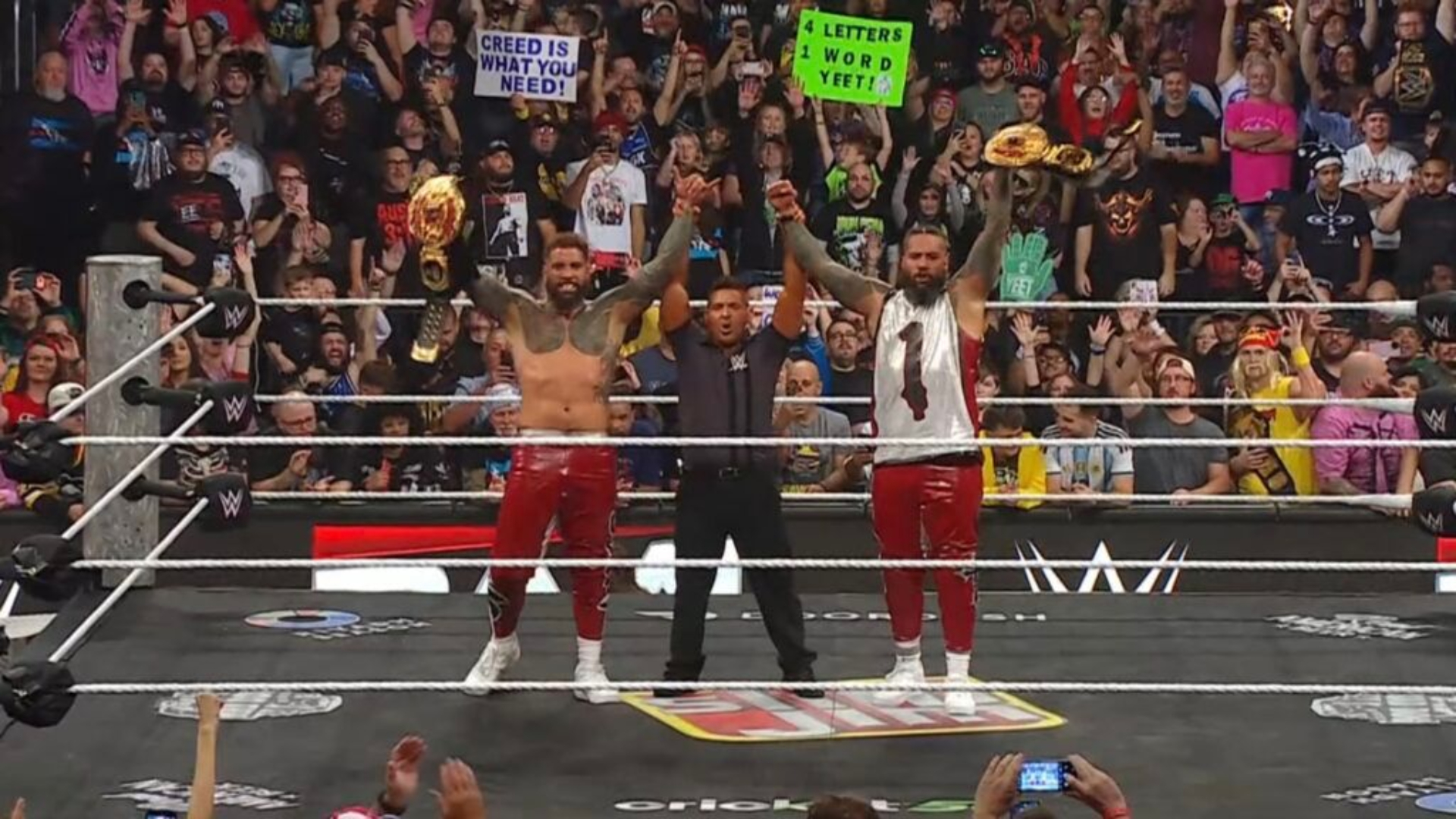 Con Styles fuera de combate momentáneamente, Dragon Lee quedó solo frente a la maquinaria de los samoanos. A pesar de su valiente esfuerzo por defender el oro, el mexicano fue víctima de una combinación de Superkicks dobles seguida del devastador 1D. Jey Uso realizó la cobertura mientras el público contaba al unísono: uno, dos, tres.