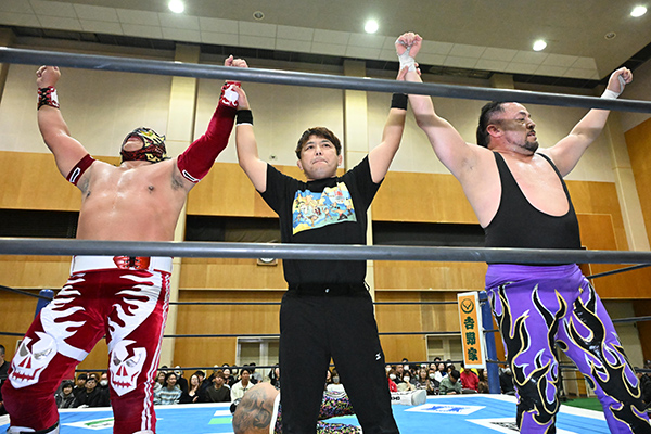 – Third Match: Tiger Mask & CozyMAX (OKUMURA & Satoshi Kojima) defeated House of Torture (Yoshinobu Kanemaru & Yujiro Takahashi) & Magnus (Trios Match)