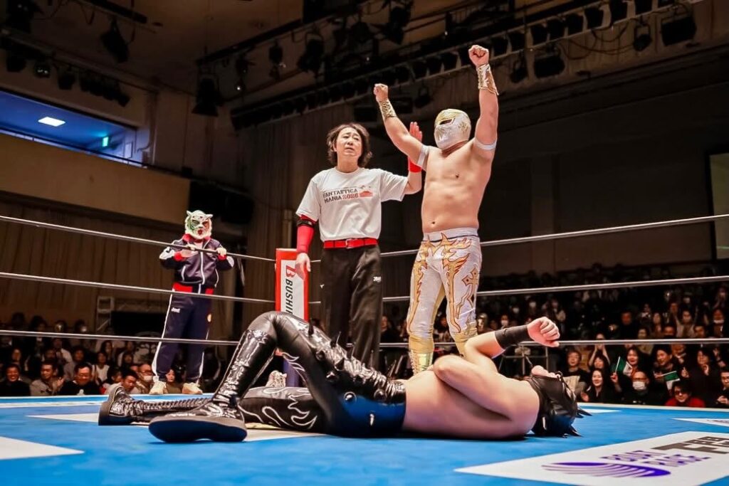 – Fifth Match: Mascara Dorada & Los Viajeros Del Espacio (Futuro & Valiente Jr.) defeated Hatsuratsu Guerrero & Unbound Co. (Daiki Nagai & Titan) (Trios Match)