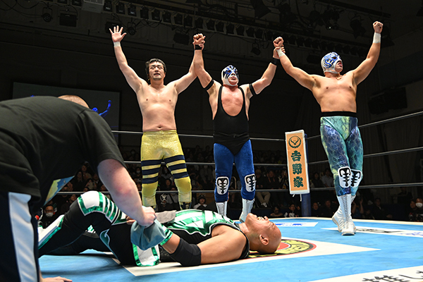 – Fourth Match: Atlantis, Atlantis Jr. & Ryusuke Taguchi defeated Hechicero & CozyMAX (Satoshi Kojima & Okumura) with Mima Shimoda (Trios Match)