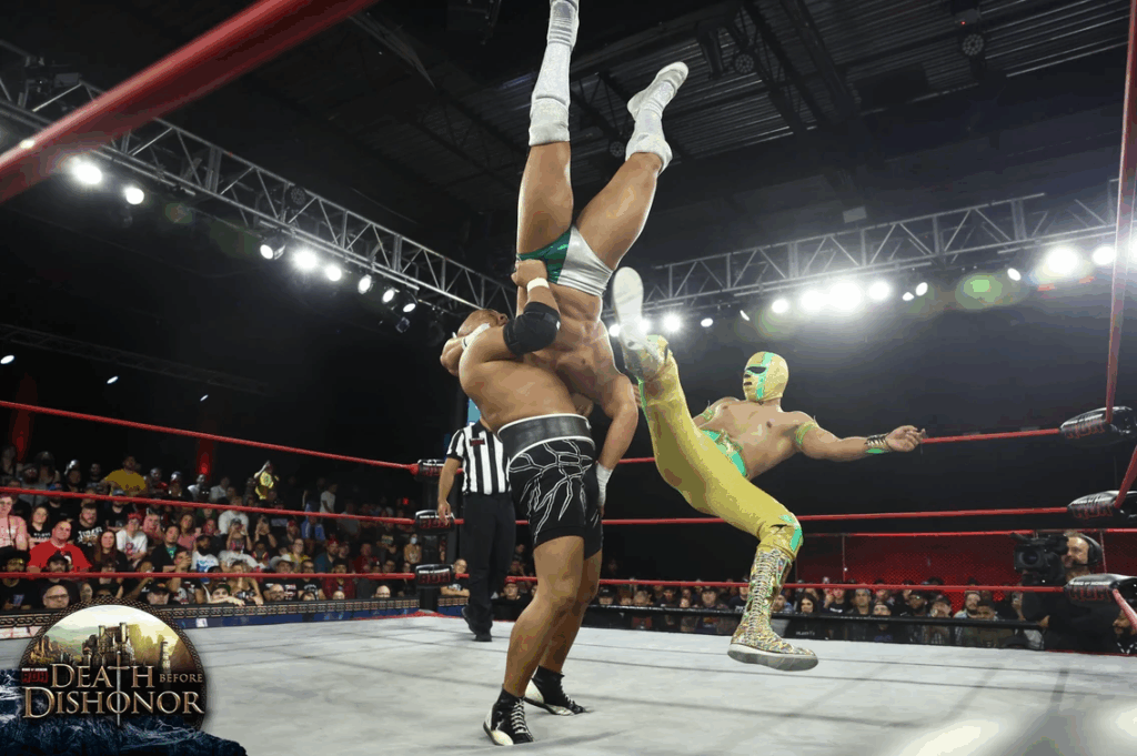 – Second Match: Shane Taylor Promotions (Shane Taylor, Carlie Bravo, and Capt. Shawn Dean) defeated The Sons of Texas (Marshall Von Erich, Ross Von Erich, and Sammy Guevara) (c) (ROH World 6-Man Tag Team Championship Match)