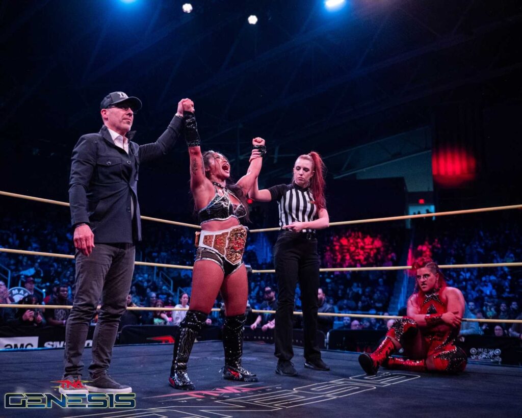– Fifth Match: Lei Ying Lee (c) defeated Zaria with Sol Ruca(WWE) (TNA Knockouts World Championship Match)
